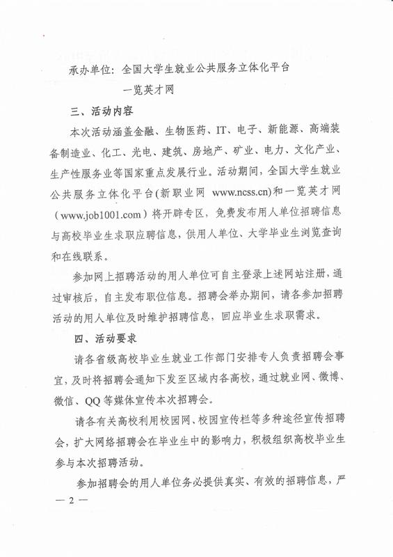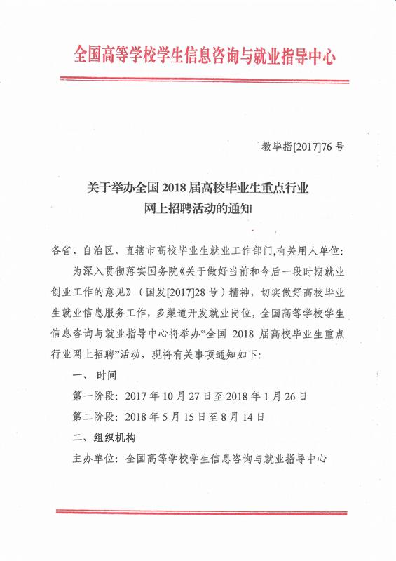 关于举办全国2018届高校毕业生重点行业网上招聘活动的通知