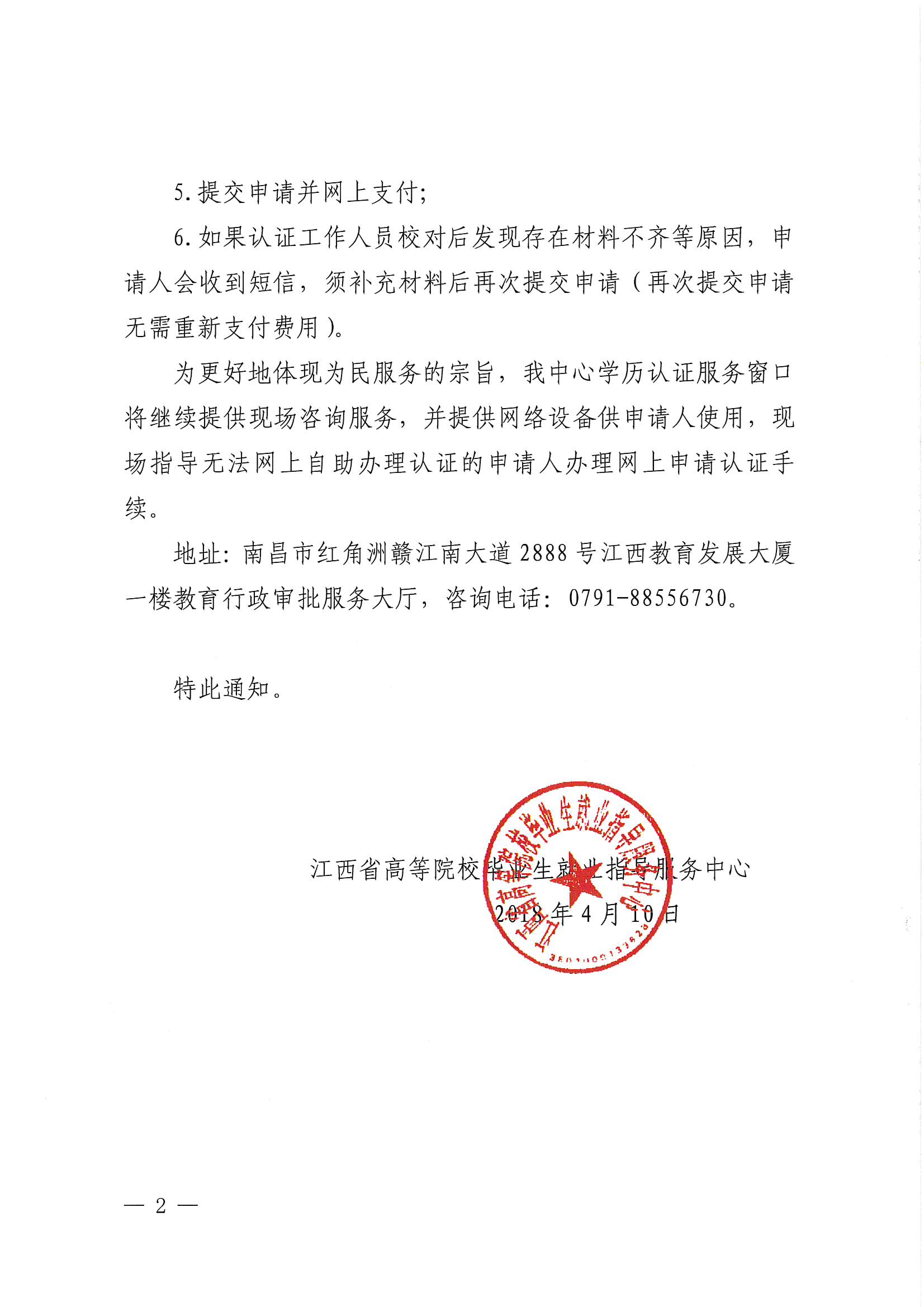 江西省高等院校毕业生就业指导服务中心关于开通中国高等教育学历网上申请的通知